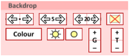 Colours >> – Click this button to access the backdrop colours menu. See next sections for an explanation.