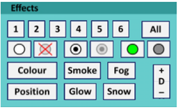 - Effects >> Gen [1-6] >> Glow/Snow/Fog/Smoke – to select effect
